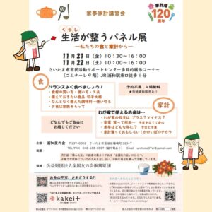 11月21日(金)、22日(土)家事家計講習会[生活(くらし)が整うパネル展 ―私たちの食と家計から―]開催します新着!!
