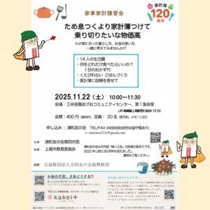 11月22日(土)家事家計講習会[ため息つくより家計簿つけて 乗り切りたいな物価高]開催します新着!!
