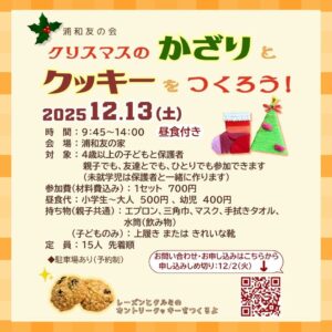 12月13日(土)[クリスマスのかざりとクッキーをつくろう!]開催します新着!!